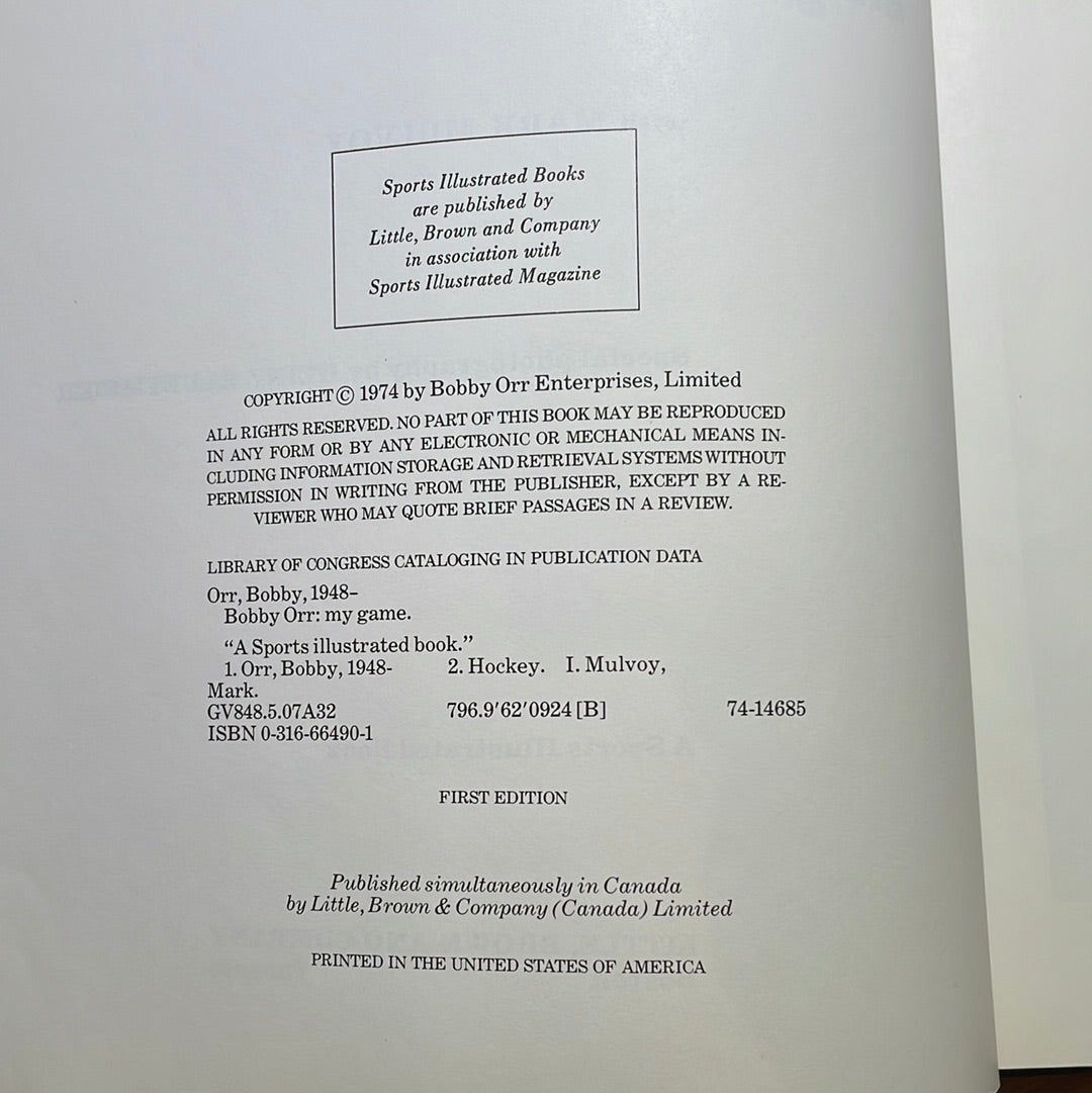 My Game by Bobby Orr with Mark Mulvoy. copyright 1974, first edition.